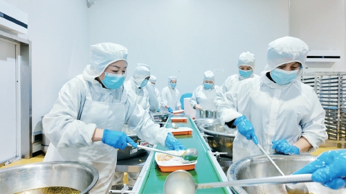 初冬的济南清晨带着些凉意,但金德利供应链的出产厂区暖意渐浓。早上8点,记者怀着猎奇的表情看望配餐出产流程,刚到入口就被拦下“要进车间,必需先过消毒关!”工做人员递来一套配备,白大褂、头罩、口罩、鞋套一应俱全,穿戴时需确保头发、脚踝等部位完全被笼盖,丝毫不克不及草率。洗手池前,记者按照完成“七步洗手法”后,又用酒精凝胶细心擦拭双手。随后,被带入一间密闭的“风淋房”,吹掉身上的浮尘和毛发。记者远了望见出产车间入口处,工人们要再次颠末第二道室,进行手部的二次消杀。“间接接触饭菜的岗亭,消毒法式必需加码。”出产运营核心部长孔桂连告诉记者。推开车间大门,一股浓重的饭喷鼻劈面而来。炒制区,大厨正将新颖五花肉倒入智能温控炒锅,“滋啦”一声响后,酱喷鼻便正在空气中洋溢开来;灶台上,金汤鱼片刚出锅,奶白色的汤汁冒着热气;另一边,色泽鲜明的炒鸡块堆成小山“这些都是济南人常吃的口胃,这是我们的拿手佳肴!”掌勺大厨一边颠勺一边引见。